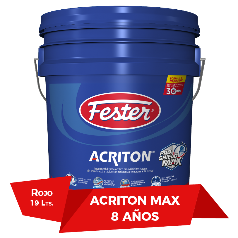 Acriton 8 años Rojo 19 Litros Fester es un impermeabilizante elastomérico de última generación que logra el mejor balance de propiedades