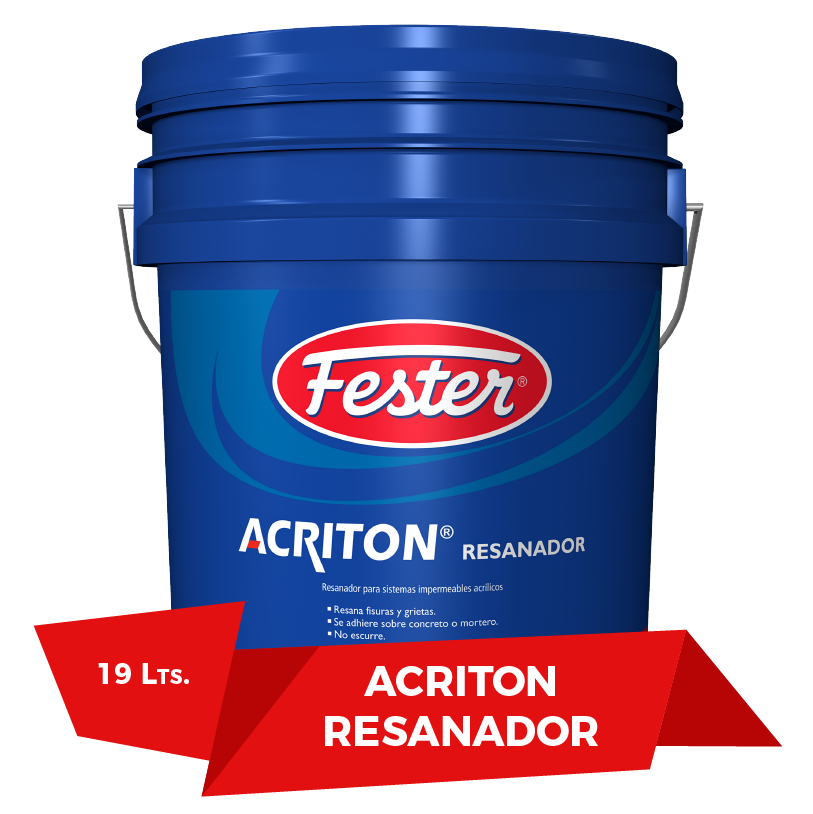 Acriton Resanador Fester Acrílico es un resanador para fisuras y grietas en sistemas impermeables acrílicos, formulado a base de resinas acrílicas base agua, agentes minerales y alto contenido de fibras sintéticas; libres de asbesto.