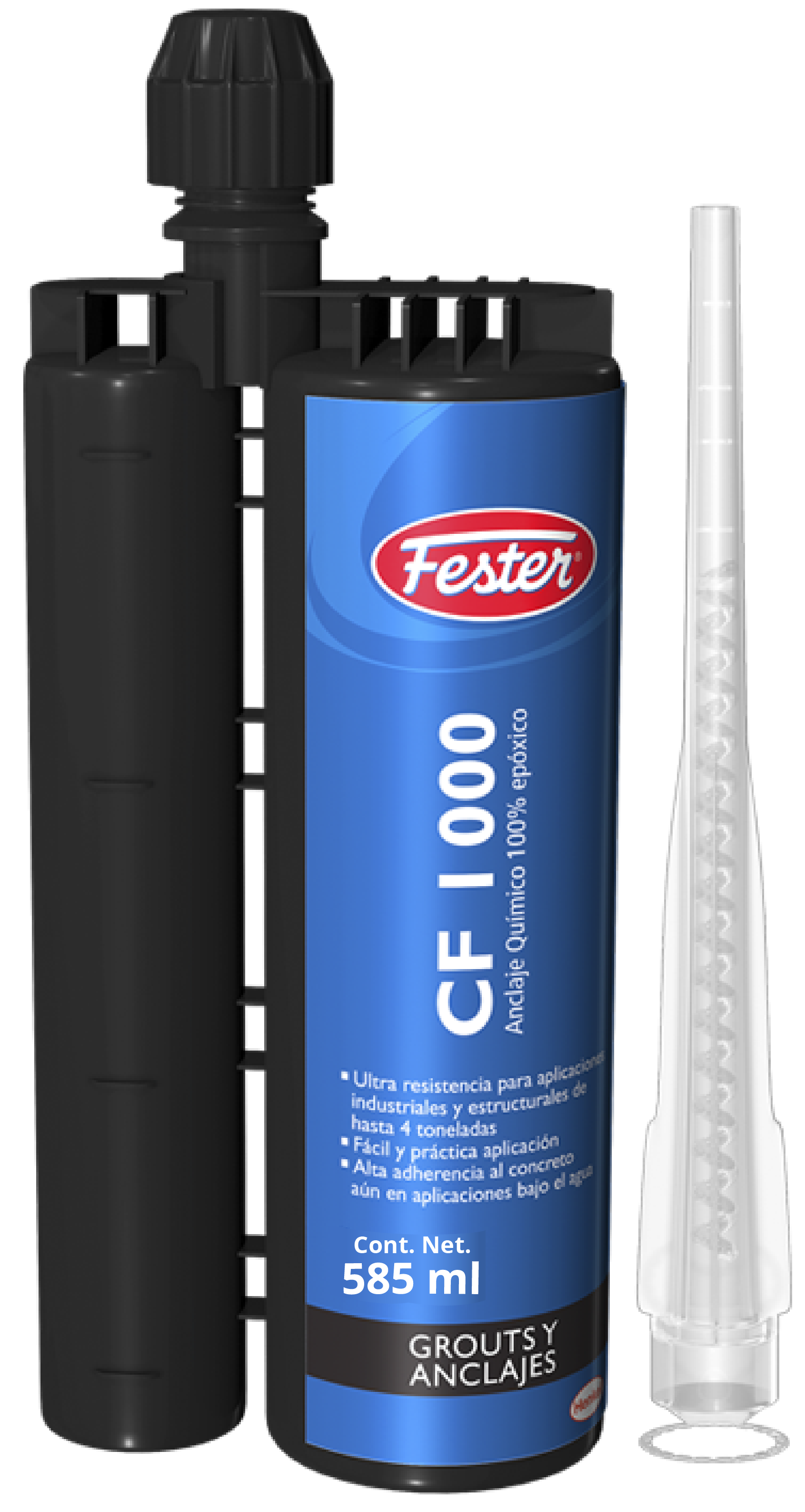 Fester Fijador CF 1000 es un producto epóxico 100% sólidos (libre de solventes) de 2 componentes y de catalización rápida para resolver necesidades de fijación (anclaje) estructural de alto desempeño.