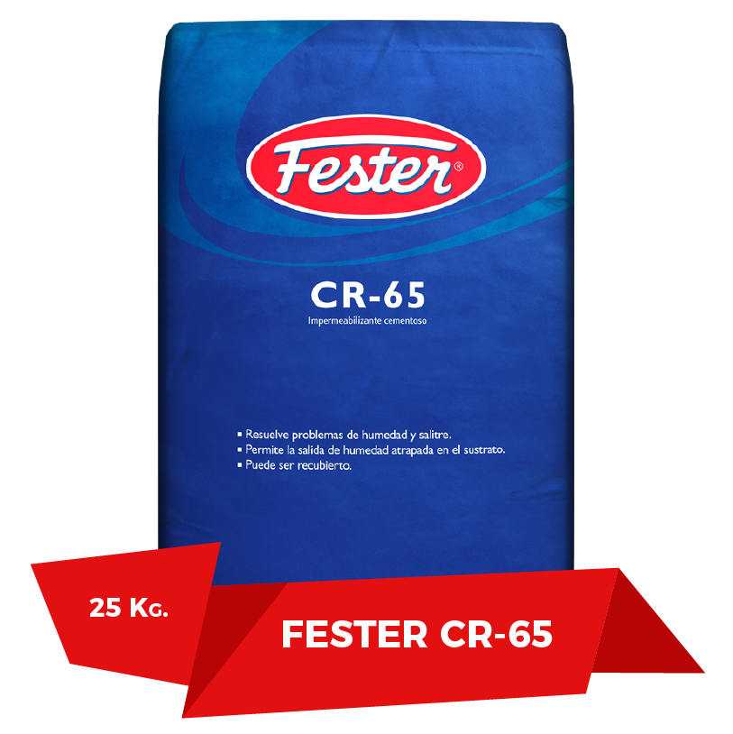 Impermeabilizante CR-65 Cementoso es un compuesto base cemento en polvo que al prepararlo, es de consistencia cremosa, suave y fácil de aplicar. Una vez aplicado y seco, forma una capa impermeable.