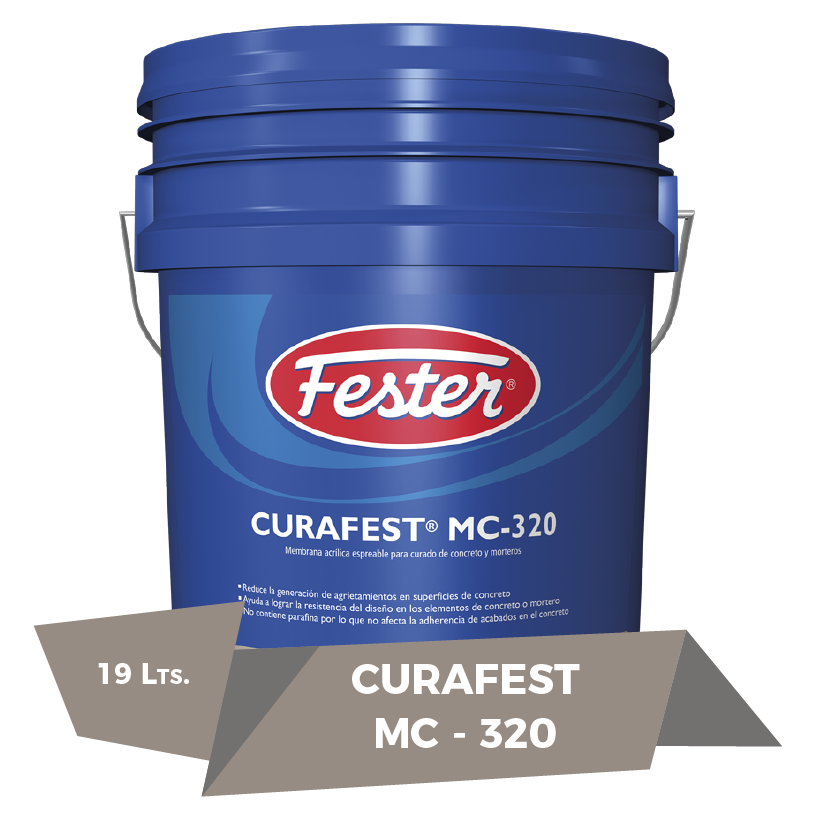 Fester Curafest MC–320 Membrana es un acrílico esperable que esta diseñada para curar elementos de concreto  en cualquier posición y reduce la posibilidad de agrietamientos causados por vientos y temperatura.
