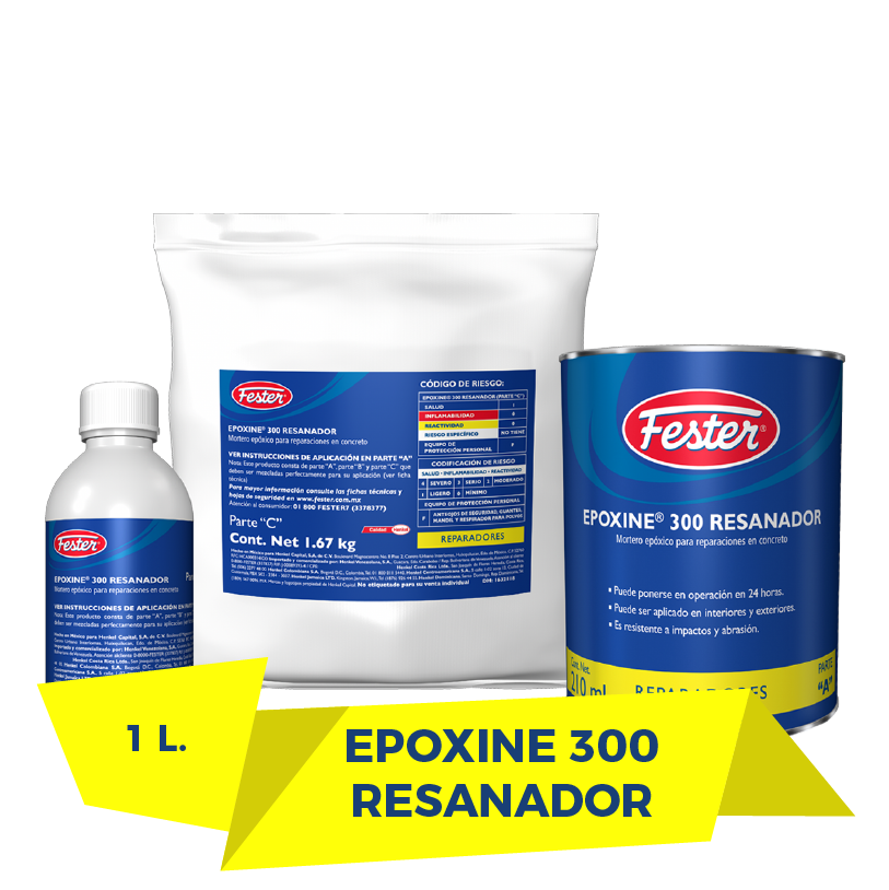 Fester Epoxine 300 resanador es un mortero termofijo epóxico amínico de tres componentes 100% sólidos (libre de solventes).