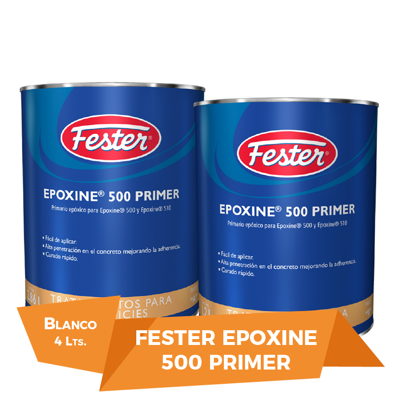 Fester Epoxine 500 Primer Blanco 4L es un primario epóxico amínico pigmentado 100% sólidos (no contiene solventes) para imprimación del concreto antes de aplicar el recubrimiento epóxico Fester Epoxine 500.
