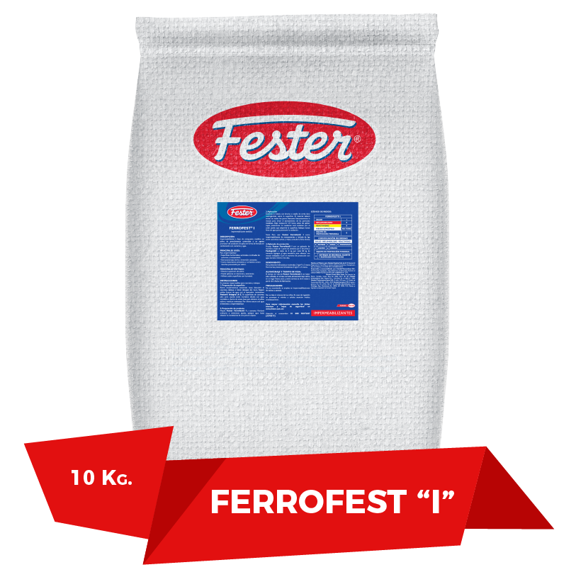 Saco 10 kg – Fester Ferrofest I es la solución a los problemas de humedad y apariciones de salitre en el interior y exterior de superficies de concreto y mampostería provocados por los niveles freáticos altos o humedades en contra-bardas.