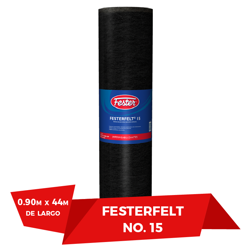 Festerfelt 15 – Refuerzo Impermeable es una membrana de refuerzo (fieltro) de celulosa comprimida impregnada con asfaltos tratados.