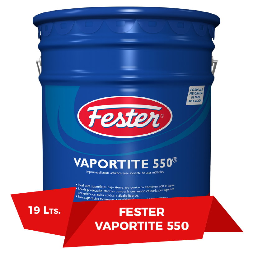 Fester Vaportite Impermeabilizante 550 es un asfáltico base solvente, libre de aromáticos, de usos múltiples, elaborado con asfaltos refinados, agregados minerales, fibras de refuerzo libres de asbesto y disolventes de rápida evaporación.